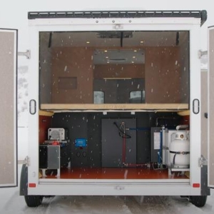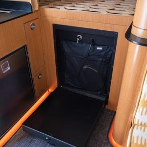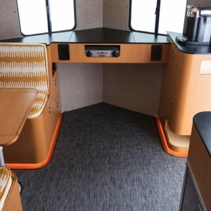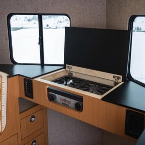 海外露营设备制造商Tetravan将一个拖挂行李舱改造成了真正的豪华拖挂房车,全新造型让它看上去简约、现代,车内通过伸缩折叠设备进一步优化内部空间,最终实现移动办公室、厨房区、休息区、淋浴间等功能全面的旅居挂车。创始人Julian Secomb拥有非常丰富的私人飞机、露营车家具设计制造经验,于2022年成立Tetravan公司。这款全新产品尺寸小巧紧凑,采用双轴设计以保证行驶、驻车时的稳定性。新车基于ATC Raven铝制货物拖车打造,拥有高质量的结构框架作为基础,为提升保暖效果,地板、墙壁以及车门部件采用约30cm的硬质绝缘泡沫板作为保温层。除了常规的房车侧门外,车尾部我们还可以看到类似集装箱的对开门设计。车外配置包括车顶行李架、户外遮阳棚等,平整的顶部区域还铺设有太阳能板。生活区内部由分体式厨房区、会客区、尾置横床组成,内部布局紧凑,但功能性完善,适合2-3人的旅居体验。内部主要以柚木材质来突出豪华感,大部分家具边角设计成了圆角,呈现出“外刚内柔”,温馨宜家的质感。生活区前部既是厨房区也是办公区,折叠桌板放下后可以形成规整的办公台面,前方两扇车窗还可以给车内提供通风采光作用。打开桌板,内部为双眼燃气灶,可以通过预留开口内部的开关控制,分体式厨房区另一部分设计在厢体中部,内嵌有不锈钢洗手池。储物方面,厨房区顶部设计有专门存放餐具的储物格,并且内部隔断可以完美固定餐具,避免行驶中磕碰餐具。会客区采用对向卡座+升降桌设计,可以作为两人的用餐区。夜间休息时,降低餐桌,该区域还能形成一张儿童床铺使用。便携式马桶收纳在座椅下方,不影响车内美观度,内部空间得到更合理利用。对于尺寸紧凑的拖挂房车来说,大多数厂家都会选择户外淋浴的方式,Tetravan设计了可折叠淋浴系统+磁吸浴帘的方式,安装过程不超过1分钟。尾置横床提供记忆海绵床垫,并且厂家定制了海桦木材质床板以保证床铺稳定性和空气流通。床头位置设计有USB接口方便为设备充电。床铺下方是全车主要储物舱,同样是全车电气系统的检修区域,如有更多用电需求,内部还能存放备用生活电池。水电方面,新车提供114L净水箱;200Ah磷酸铁锂电池+2000W逆变器将为车内电器提供电能。另外,顶部600W太阳能板还可以在行驶中为电池充电。现目前,Tetravan拖挂房车的指导价为85000美元,约合人民币61.45万元。